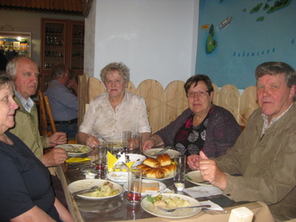 Ryhmäkuva Karjalaiskylässä |  Kahvilla Karjalaiskylässä |