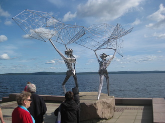 ![]() Näkymä Ääniselle | ![]() Muistomerkkejä rantakadulla |