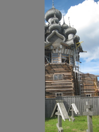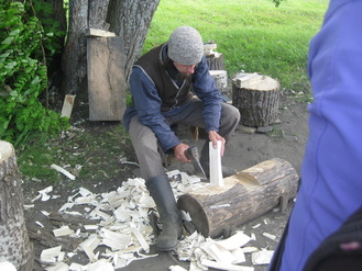 Kitzin saarella |  Työnäyte paanujen veistosta |