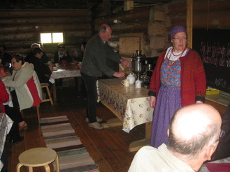 Ryhmäkuva Karjalaiskylässä |  Kahvilla Karjalaiskylässä |